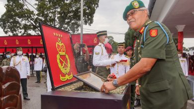 JOHOR: Timbalan Panglima Tentera Darat, Lt Jen Dato’ Seri Panglima Hj Ahmad Hasbullah Hj Mohd Nawawi menyaksikan Majlis Serah Menyerah Tugas Pengerusi Rejimen Askar Jurutera Diraja (RAJD) Ke-14 di antara Mej Jen Dato’ Pahlawan Ir Abdul Nasser Ahmad dengan Brig Jen Dato’ Pahlawan Hj Ahmad Nasir Hj Abdul Rahman di Dewan Ibrahim Institut Kejuruteraan Medan Tentera Darat (IKEM) pada 8 Mac 2018.