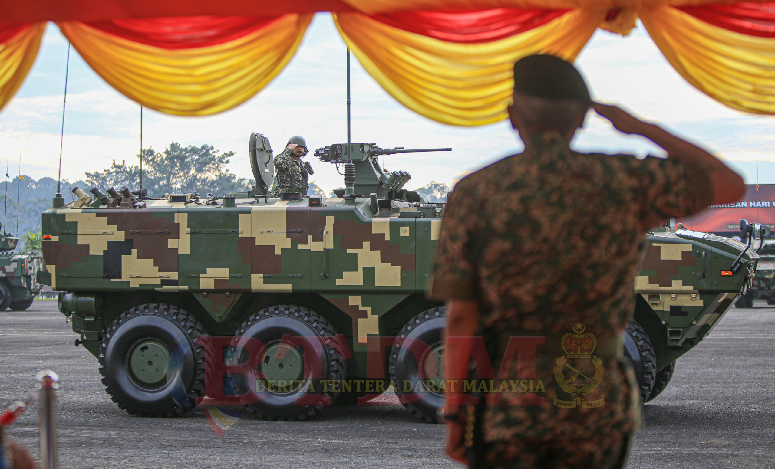 Pemeriksaan Berjalan Lalu Berkenderaan turut menampilkan aset utama KAD termasuk Kereta Perisai Gempita 8×8, Pendekar PT-91M dan Lipan Bara 4×4 yang menjadi lambang kekuatan serta keupayaan tempur kor ini.