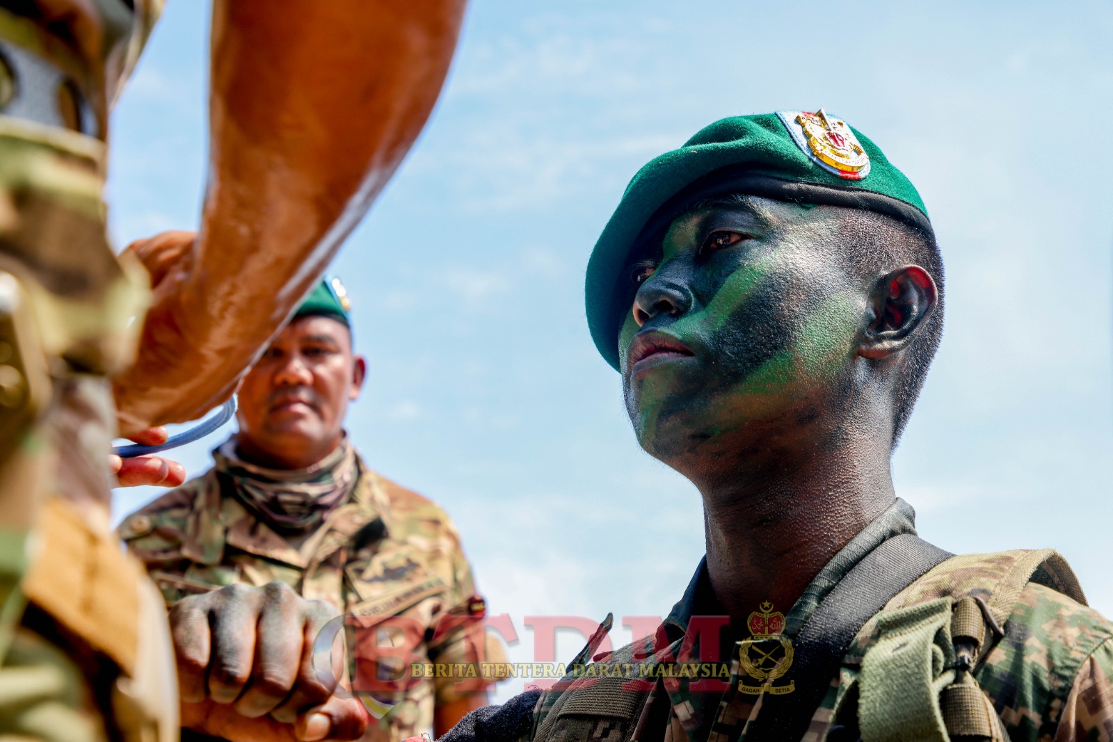 JOHOR: “Beret hijau yang anda junjung bukanlah hiasan, ianya adalah sumpah dan janji yang terikat dengan sebuah perjuangan,” tegas Panglima 21 Gerup Gerak Khas (21 GGK) merangkap Pengerusi Gerak Khas, Mej Jen Dato’ Ahmad Suhaimi Mat Wajab ketika menyempurnakan Perbarisan Penutup Kursus Asas Komando Siri AK/2/2025 dan Penganugerahan Beret Hijau Gerak Khas di Tanjung Leman, Mersing pada 5 Okt 2025.