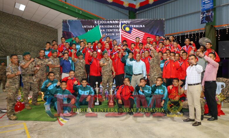 MELAKA: Tentera Darat (TD) muncul johan keseluruhan antara perkhidmatan Angkatan Tentera Malaysia (ATM) manakala Markas 21 Gerup Gerak Khas (GGK) johan kategori terbuka sempena Kejohanan Tinju Antara Perkhidmatan dan Terbuka ATM Tahun 2025 yang disempurnakan oleh Panglima 21 GGK, Mej Jen Dato’ Ahmad Shuhaimi Mat Wajab dalam majlis penutup bertempat di Dewan Ramli, Pusat Latihan Peperangan Khusus (PULPAK) pada 6 Dis 2025.
