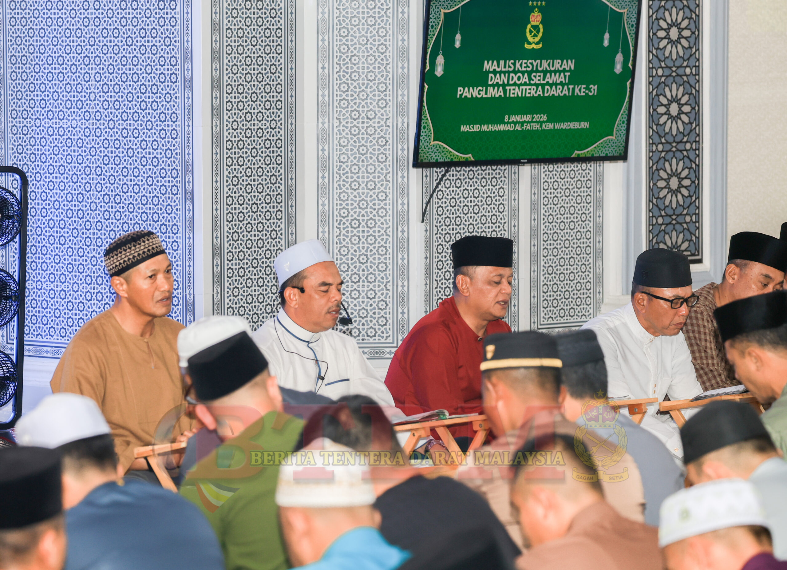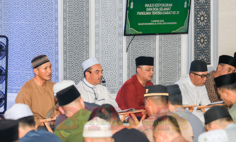 KUALA LUMPUR: Warga Tentera Darat (TD) sekitar Lembah Klang hadir mengimarahkan Majlis Kesyukuran dan Doa Selamat sempena pelantikan Panglima Tentera Darat (PTD) Ke-31, Jen Dato’ Azhan Hj Md Othman yang diadakan di Masjid Muhammad Al-Fateh pada 8 Jan 2026 bagi memohon keberkatan agar kepimpinan baharu dapat melaksanakan amanah dengan penuh tanggungjawab.